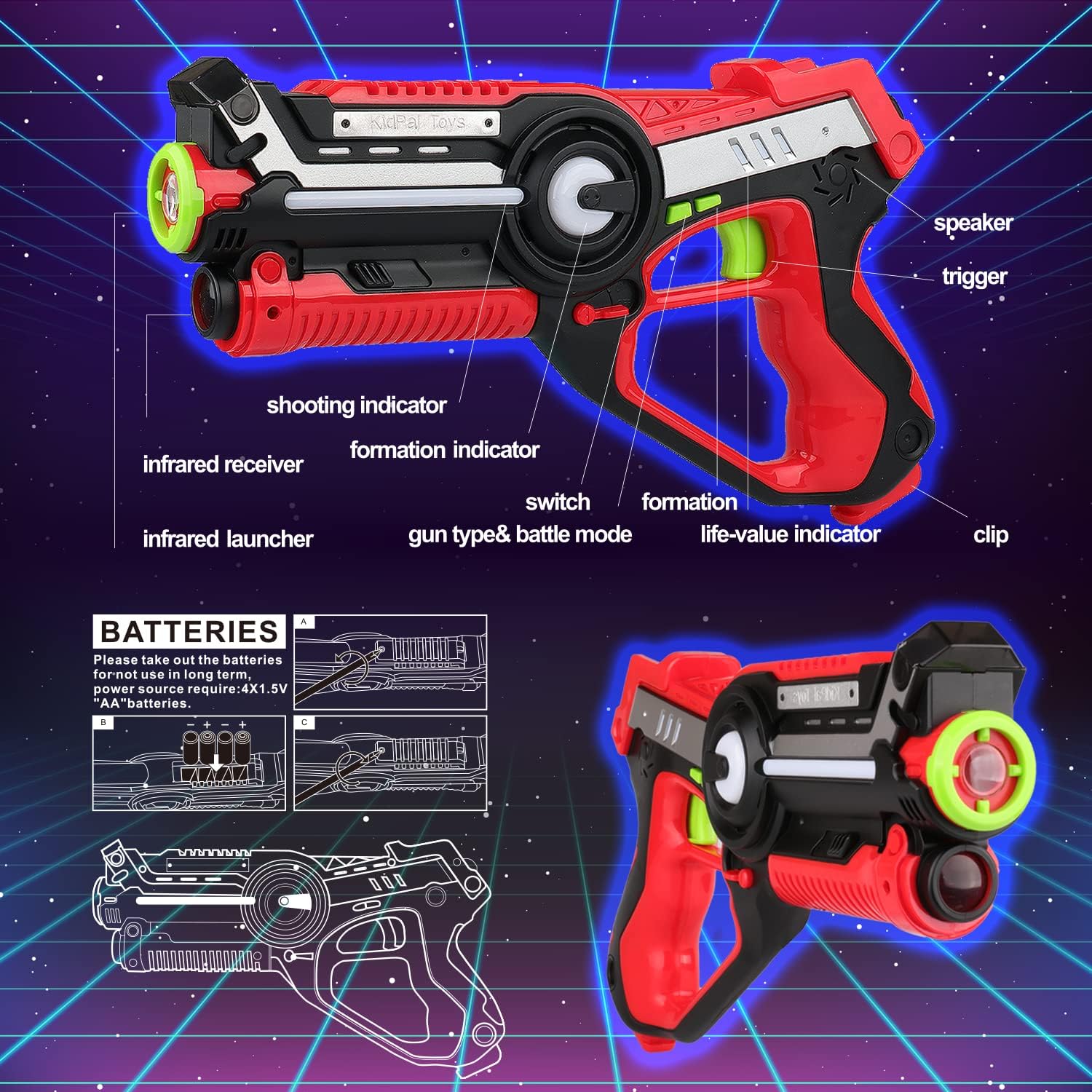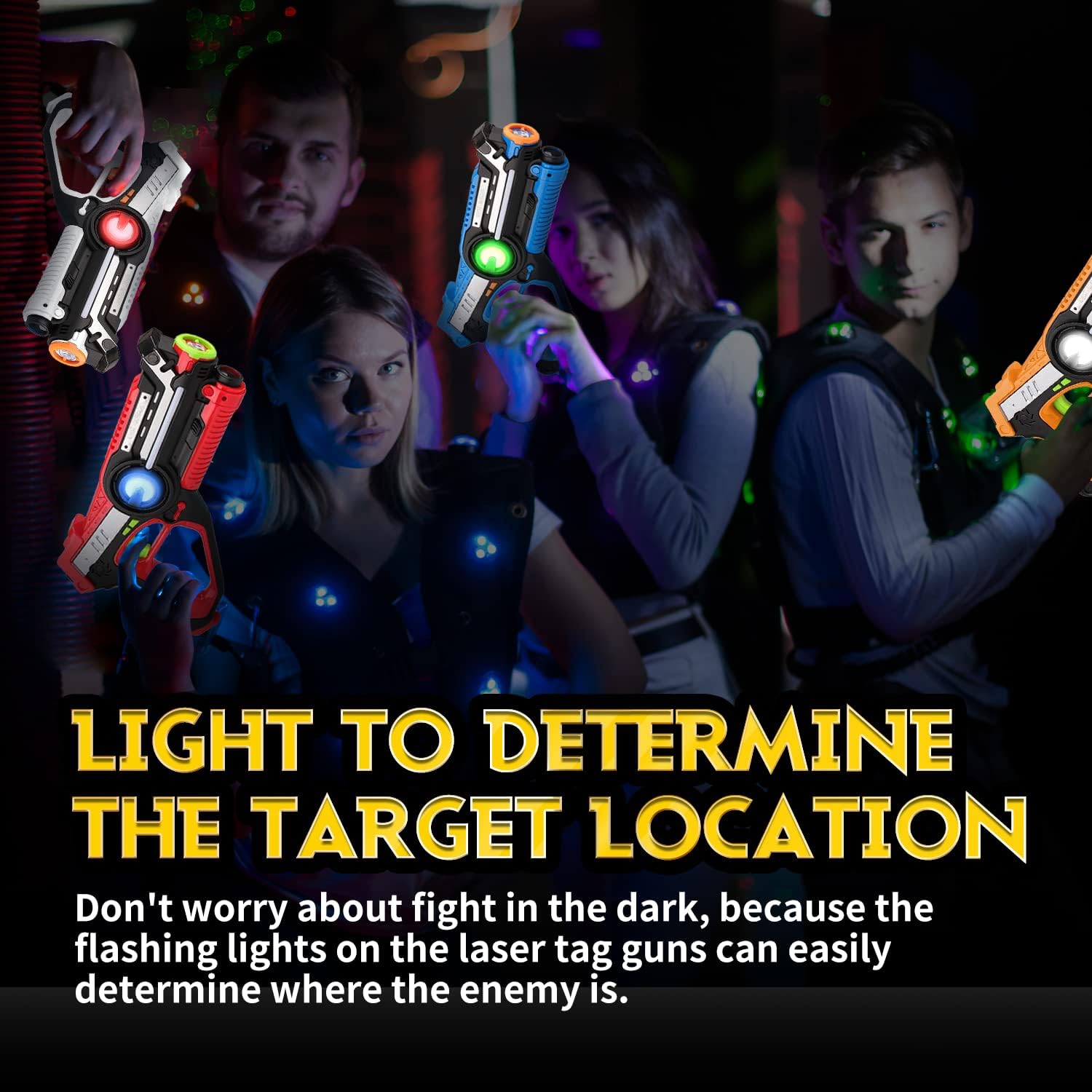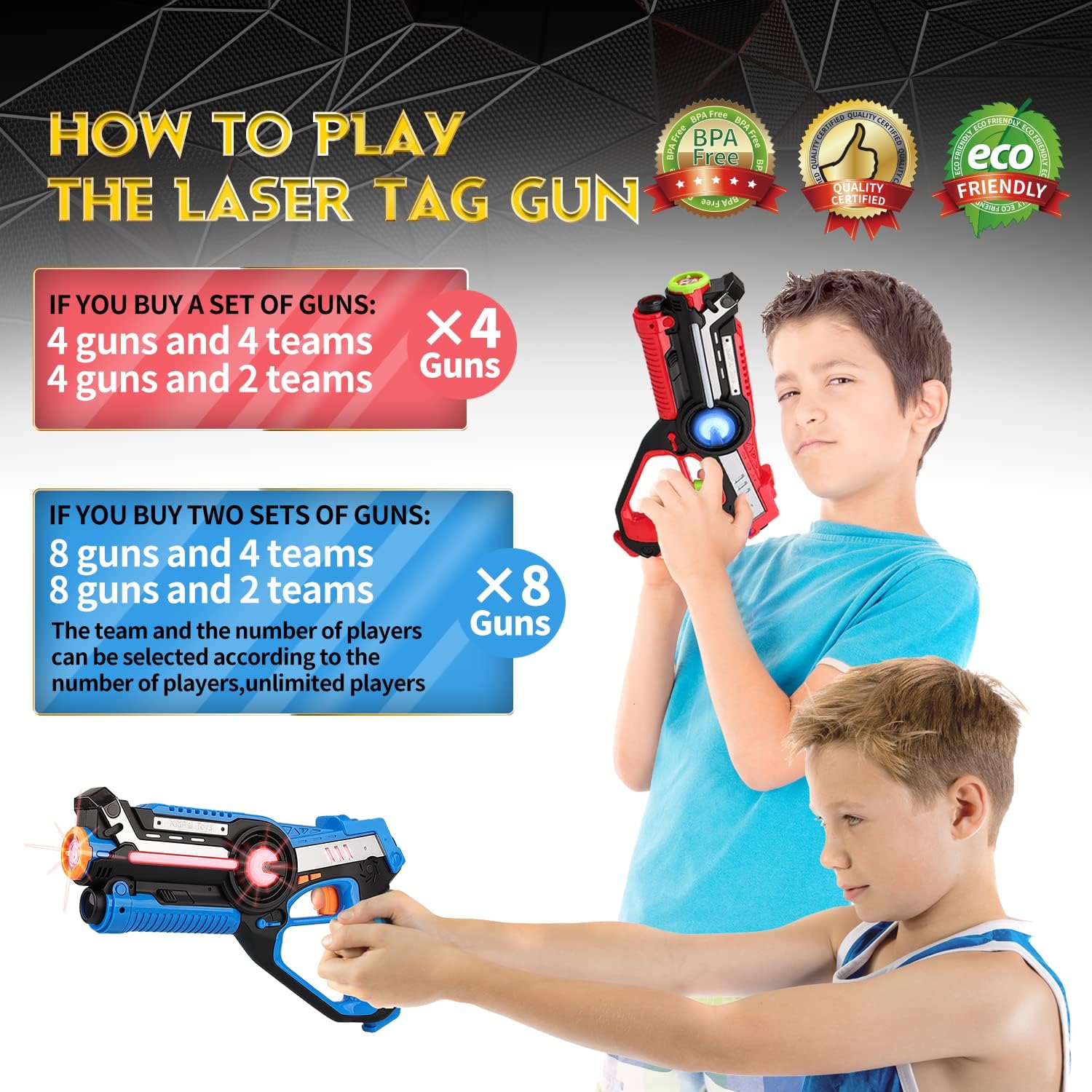 - Etiqueta láser real para niños: el juego de 4 jugadores de pistola Lazer puede ser la mejor oportunidad para mantener a tu hijo lejos de la computadora, porque nuestro juego de etiquetas láser es un diseño de escena que simula batallas reales. Los mejores suministros de fiesta con láser en fiestas y reuniones: ideal para uso en interiores y exteriores, correr, esconderse, rodar, apuntar y eliminar a tus enemigos para ganar el juego. La fiesta con etiqueta láser no solo favorece la alegría de la batalla en equipo, sino también la oportunidad de dejar que tu hijo haga ejercicio.