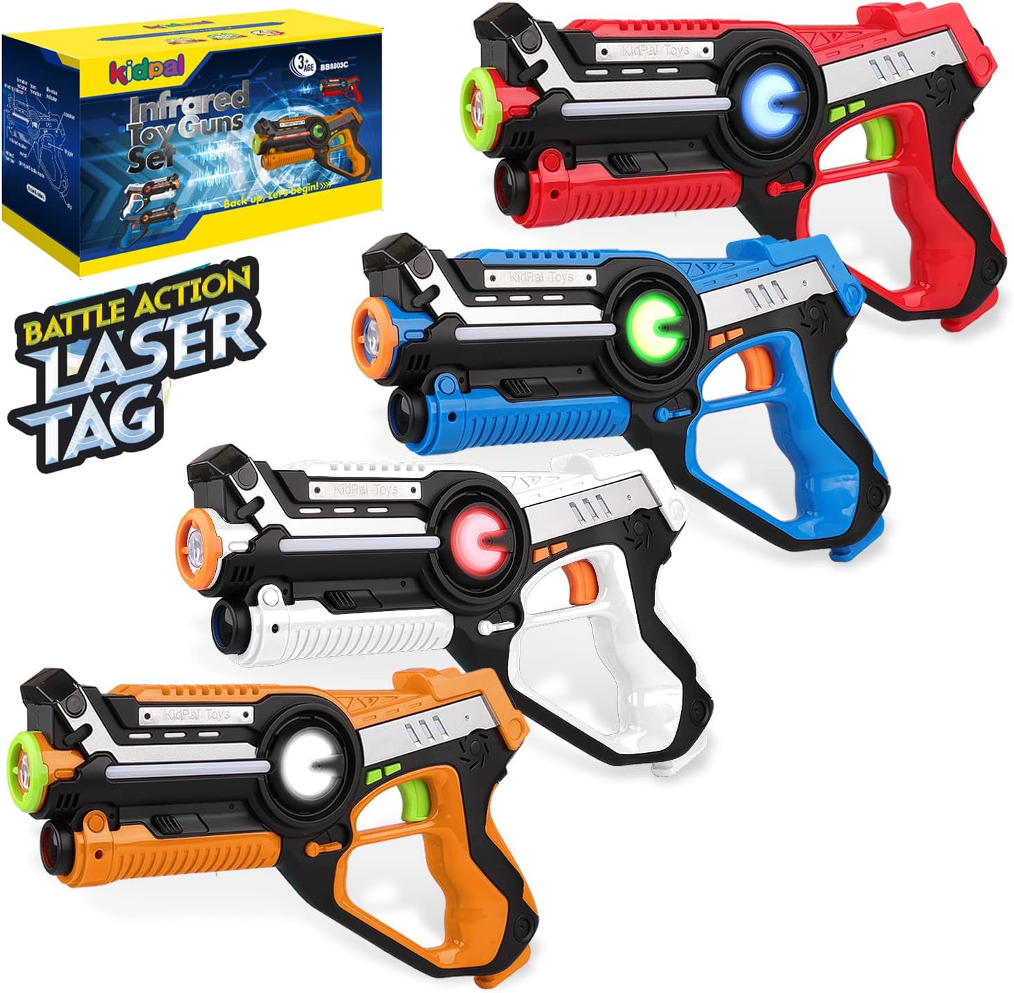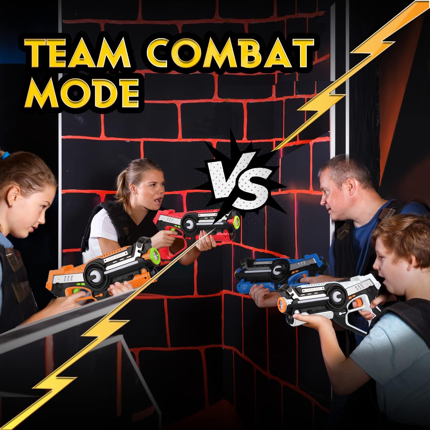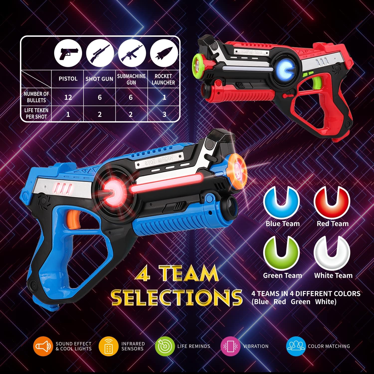 - Etiqueta láser real para niños: el juego de 4 jugadores de pistola Lazer puede ser la mejor oportunidad para mantener a tu hijo lejos de la computadora, porque nuestro juego de etiquetas láser es un diseño de escena que simula batallas reales. Los mejores suministros de fiesta con láser en fiestas y reuniones: ideal para uso en interiores y exteriores, correr, esconderse, rodar, apuntar y eliminar a tus enemigos para ganar el juego. La fiesta con etiqueta láser no solo favorece la alegría de la batalla en equipo, sino también la oportunidad de dejar que tu hijo haga ejercicio.